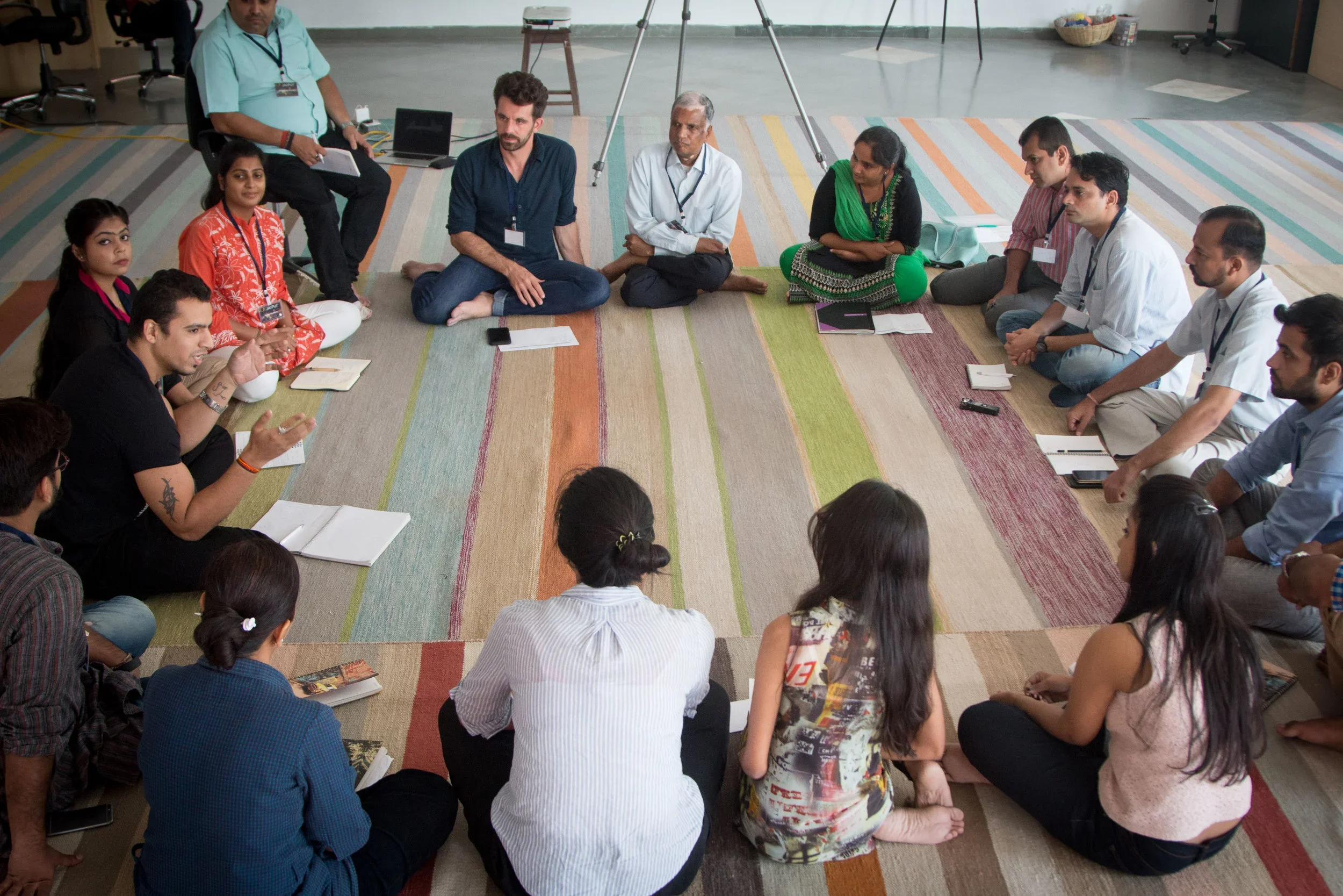 Mahika and I met in early June to discuss how some or all of this might work. We quickly agreed it would be great for someone to film an interview with N.K., drawing him out on his personal leadership journey. As we spoke about u.lab and how to bring it into the company, I kept thinking of the u.lab Scotland model and how important the pre-course kickoff workshop in Edinburgh had been for creating a shared sense of possibility amongst interested Scottish participants and hub hosts. I suggested we do something like that for Jaipur Rugs. And while I'm always sort of looking for an excuse to go to India, I wasn't necessarily thinking I would run such a workshop...