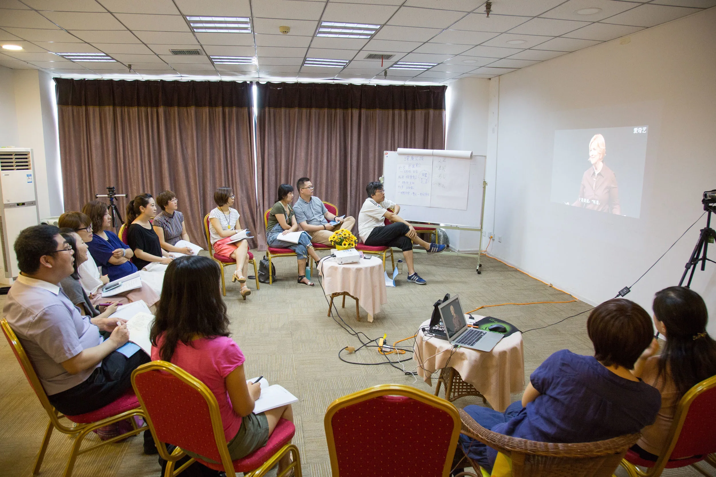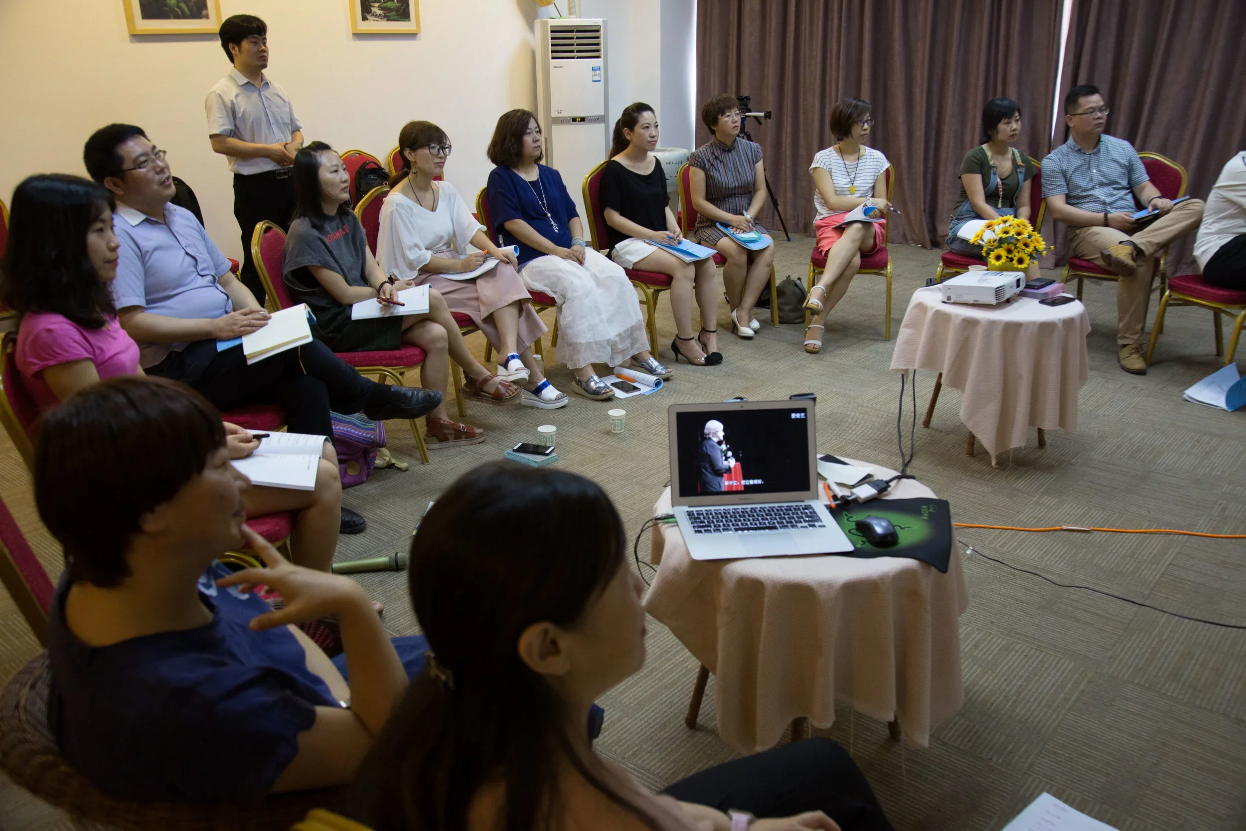 The hub in Xi'an has 500 members. A smaller subset is currently meeting monthly, for nine months, to take a deep dive through the U process using the u.lab Massive Open Online Course as a guide. Each meeting involves a two day immersion during which the group completes a week of the course together. This week is their fifth meeting in 2016, and when I arrived they were reviewing the videos from Week 4 and just beginning to watch videos from Week 5.